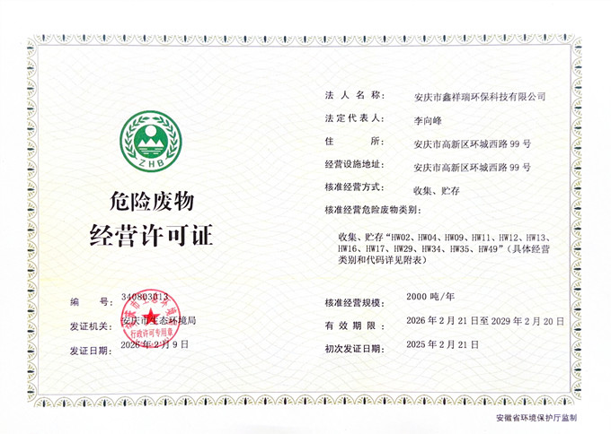 • 危廢收集、貯存(限安慶市范圍)