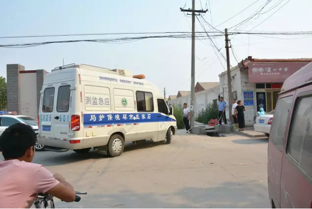 石家莊市環(huán)保局的應(yīng)急監(jiān)測(cè)車開進(jìn)事發(fā)現(xiàn)場(chǎng)。