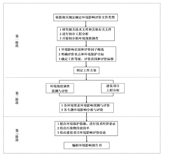 本項(xiàng)目的環(huán)境影響評價程序?qū)础董h(huán)境影響評價技術(shù)導(dǎo)則 總綱》HJ2.1-2016中規(guī)定執(zhí)行,主要工作程序?yàn)椋?/p>